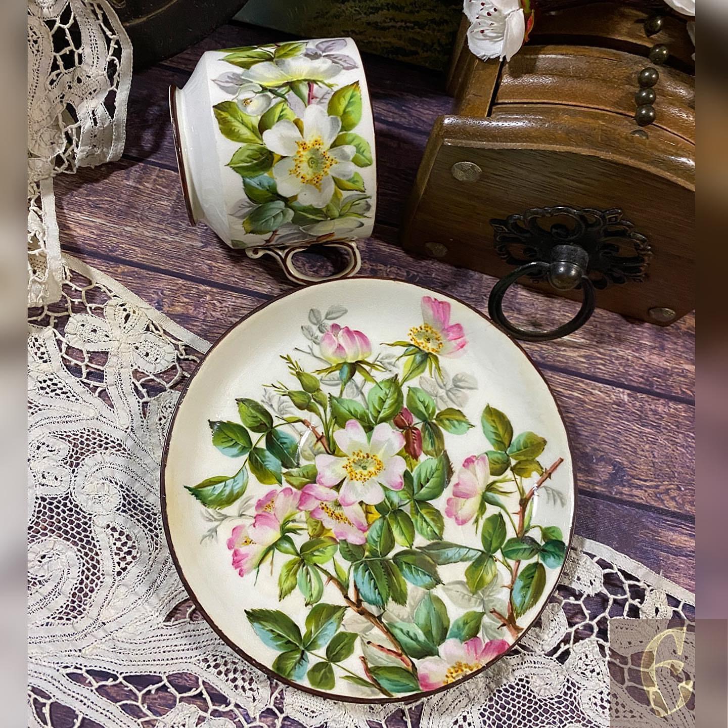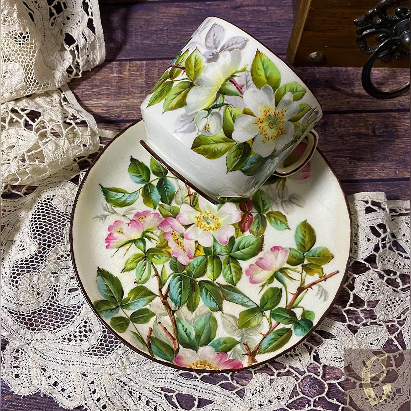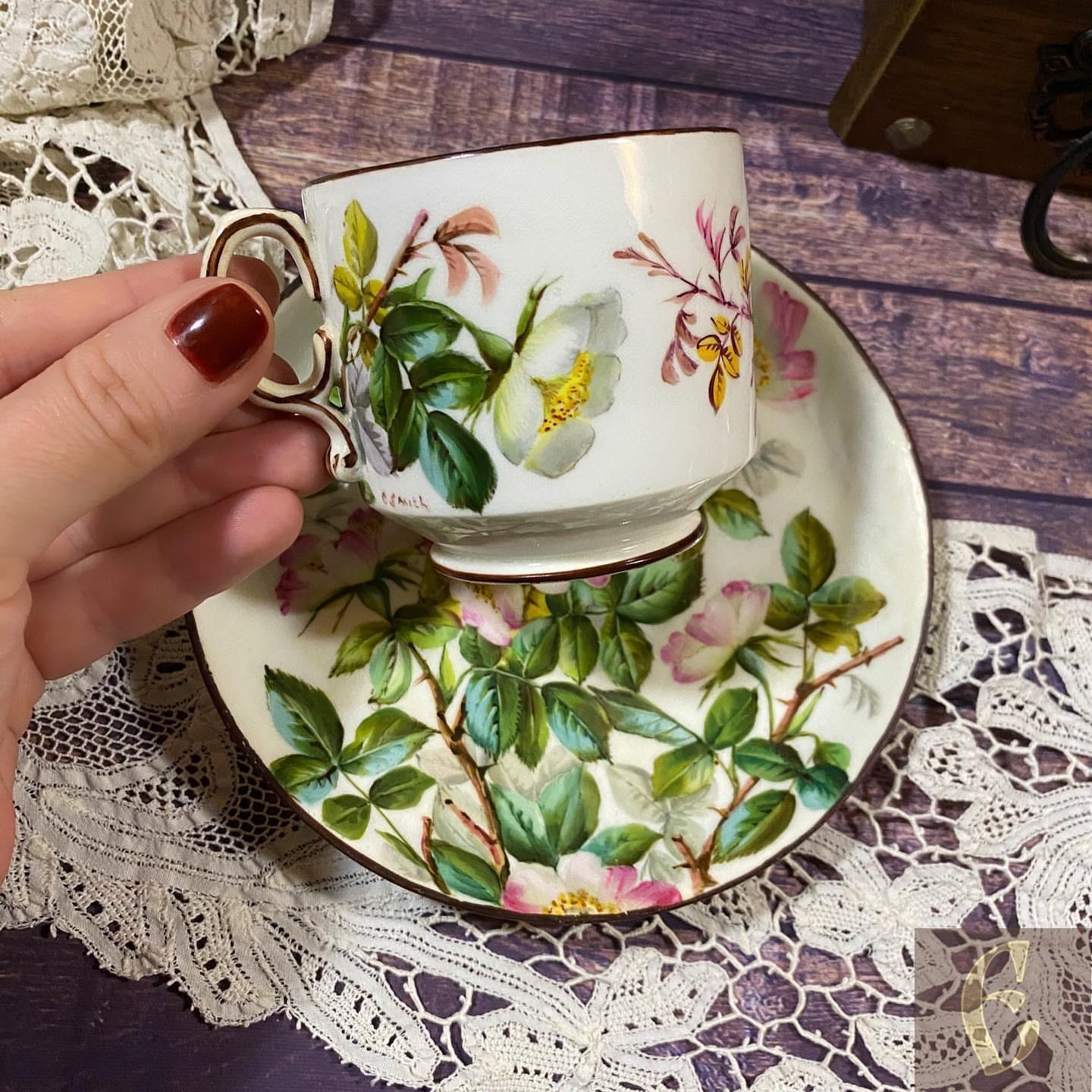 Старинный английский мягкий фарфор. Чайная пара викторианской эпохи (конец 19 века).