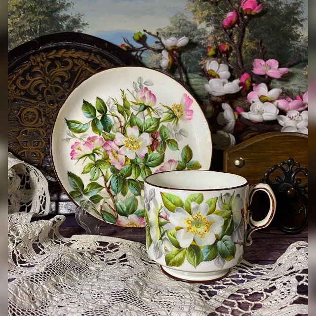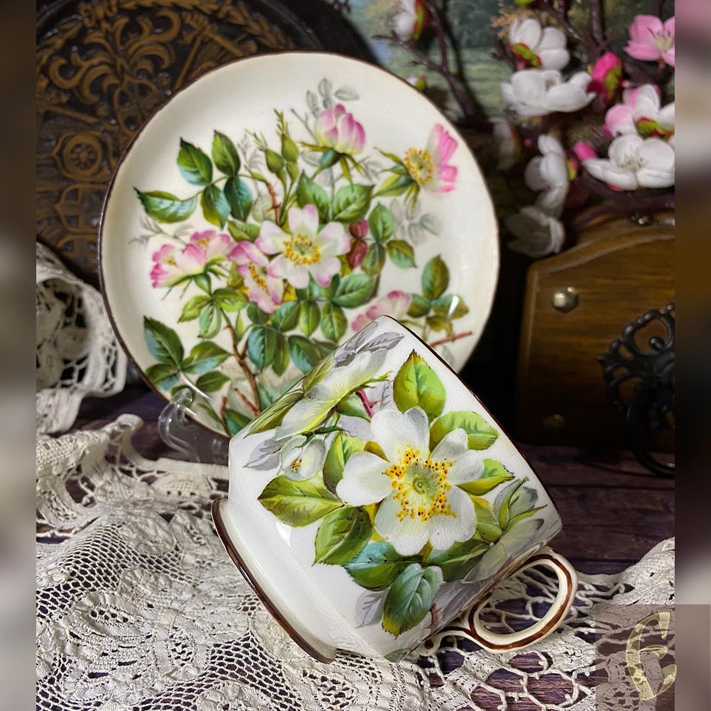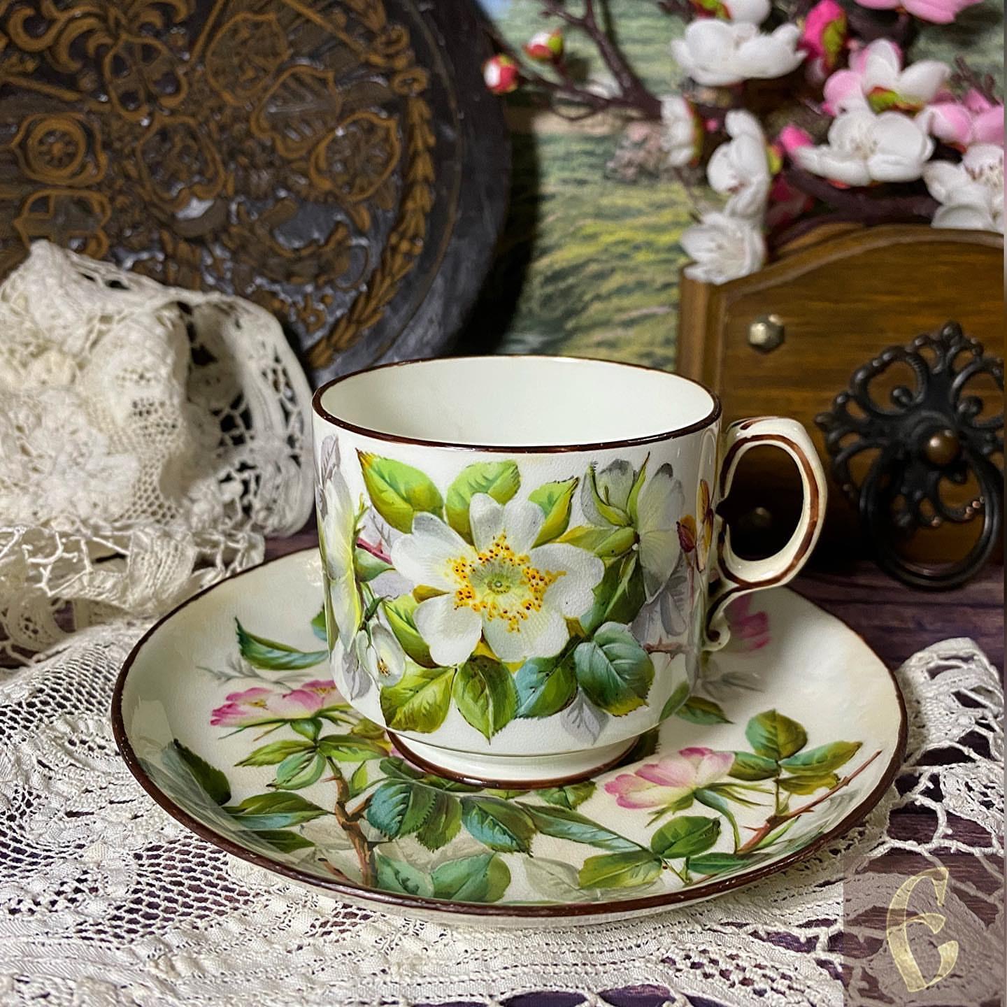 Старинный английский мягкий фарфор. Чайная пара викторианской эпохи (конец 19 века).